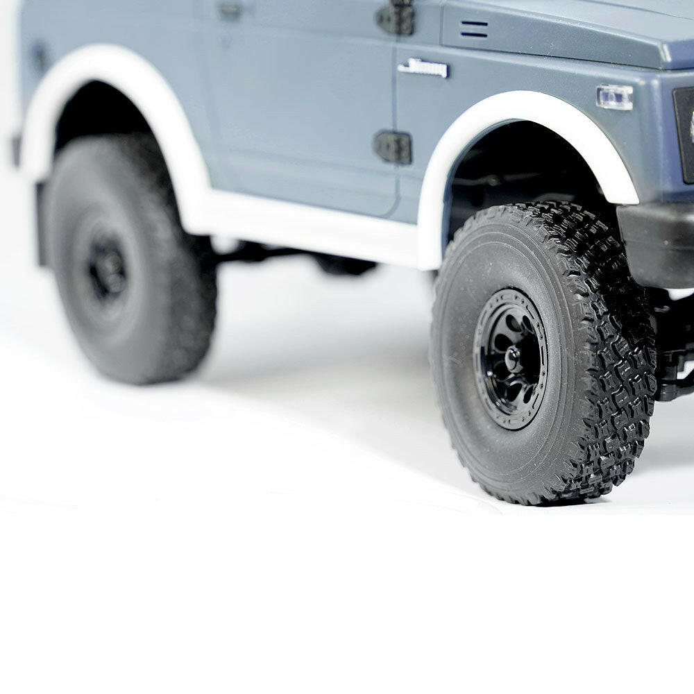 実車のスズキジムニーでも伝統的に採用されているラダーフレーム構造をはじめ リーフサスペンション機構の採用、また丈夫で走破性に優れたリジッドアクスルも再現、