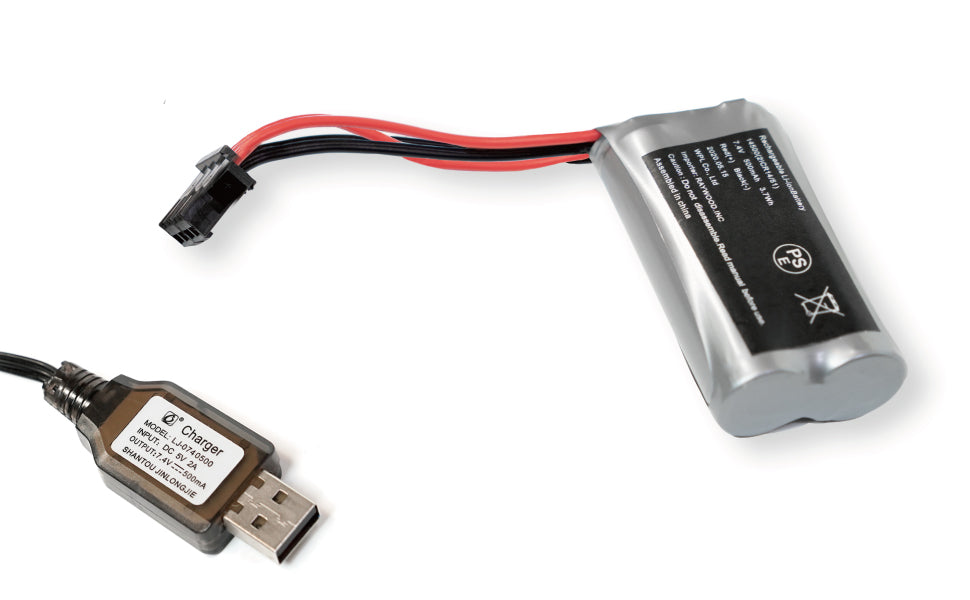 RCカー、送信機、走行用7.4Vバッテリー、USB充電ケーブル、取扱説明書、日本オリジナルステッカー