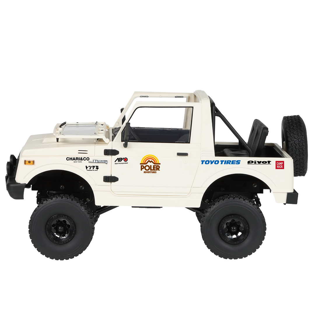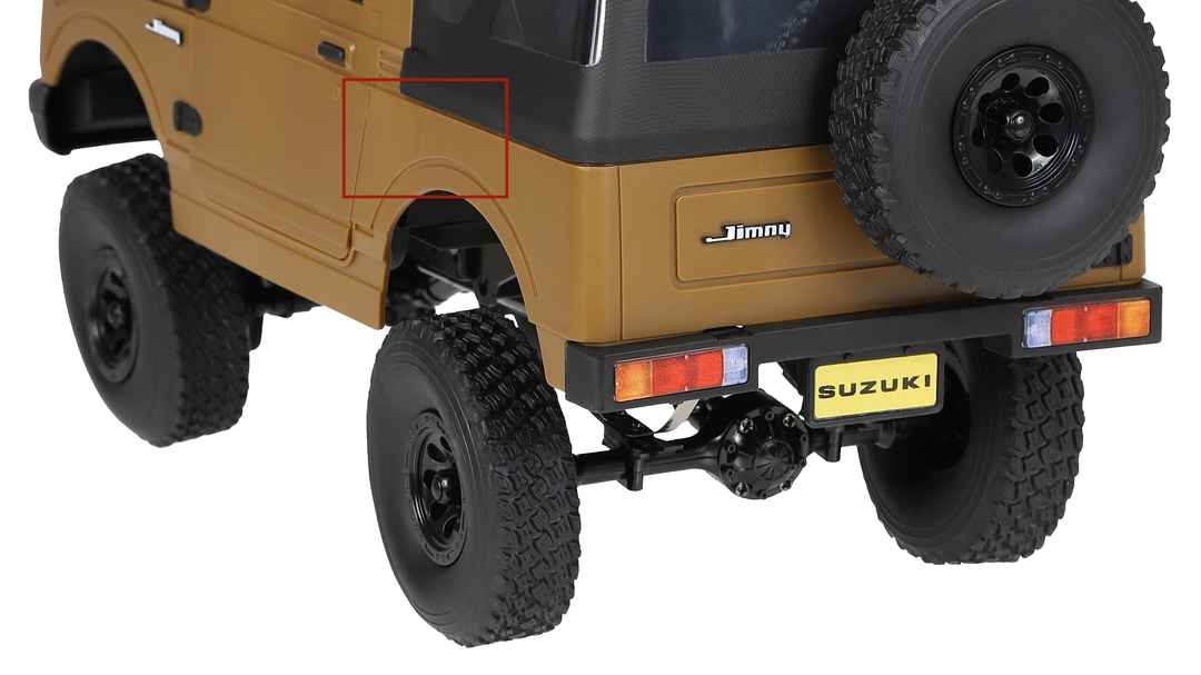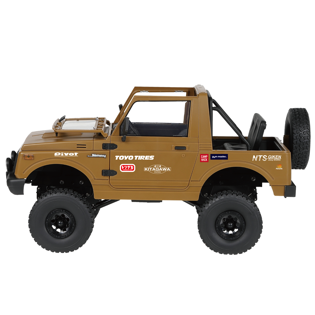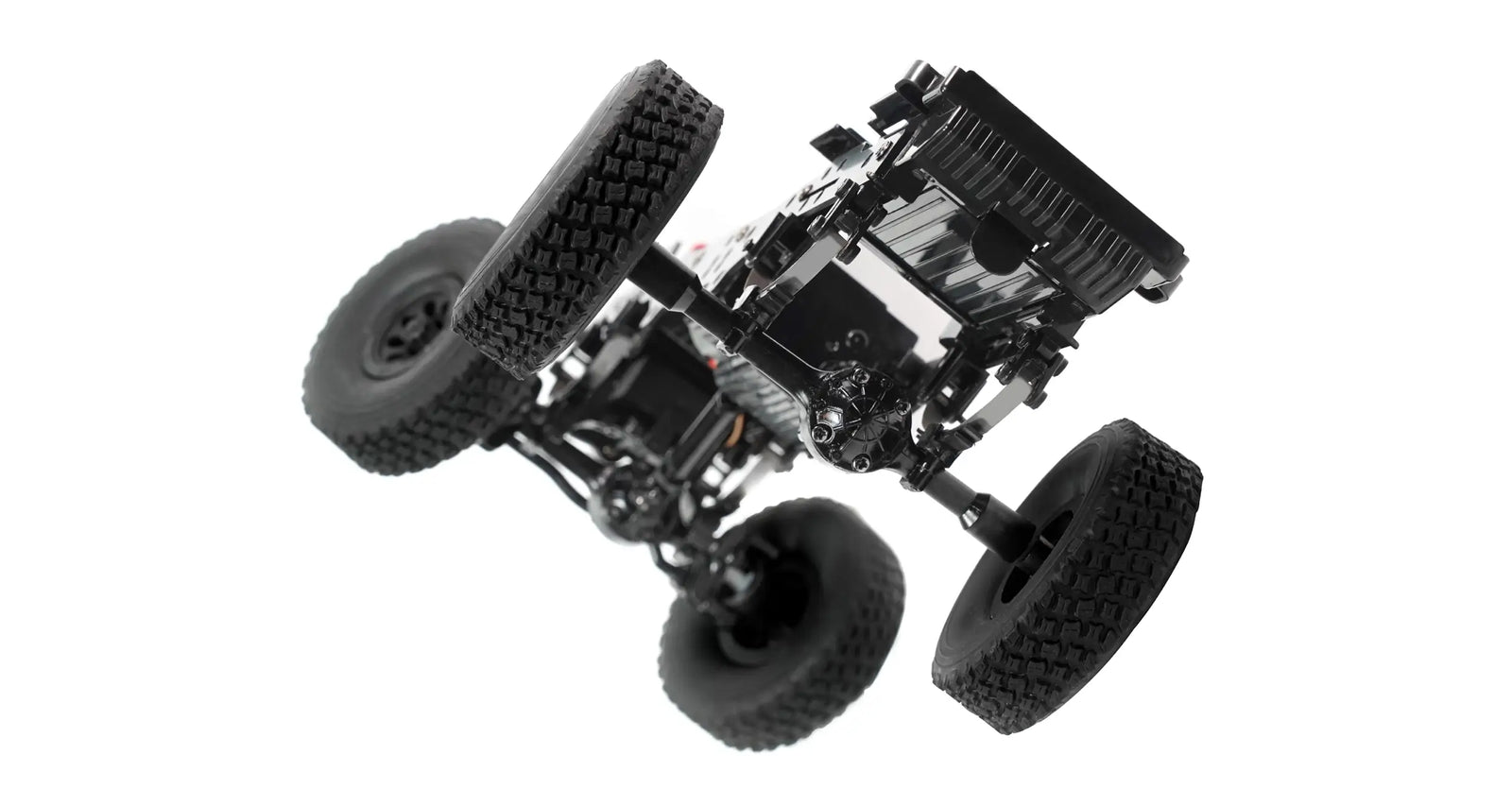 実車のスズキジムニーでも伝統的に採用されているラダーフレーム構造をはじめ リーフサスペンション機構の採用、また丈夫で走破性に優れたリジッドアクスルも再現、
