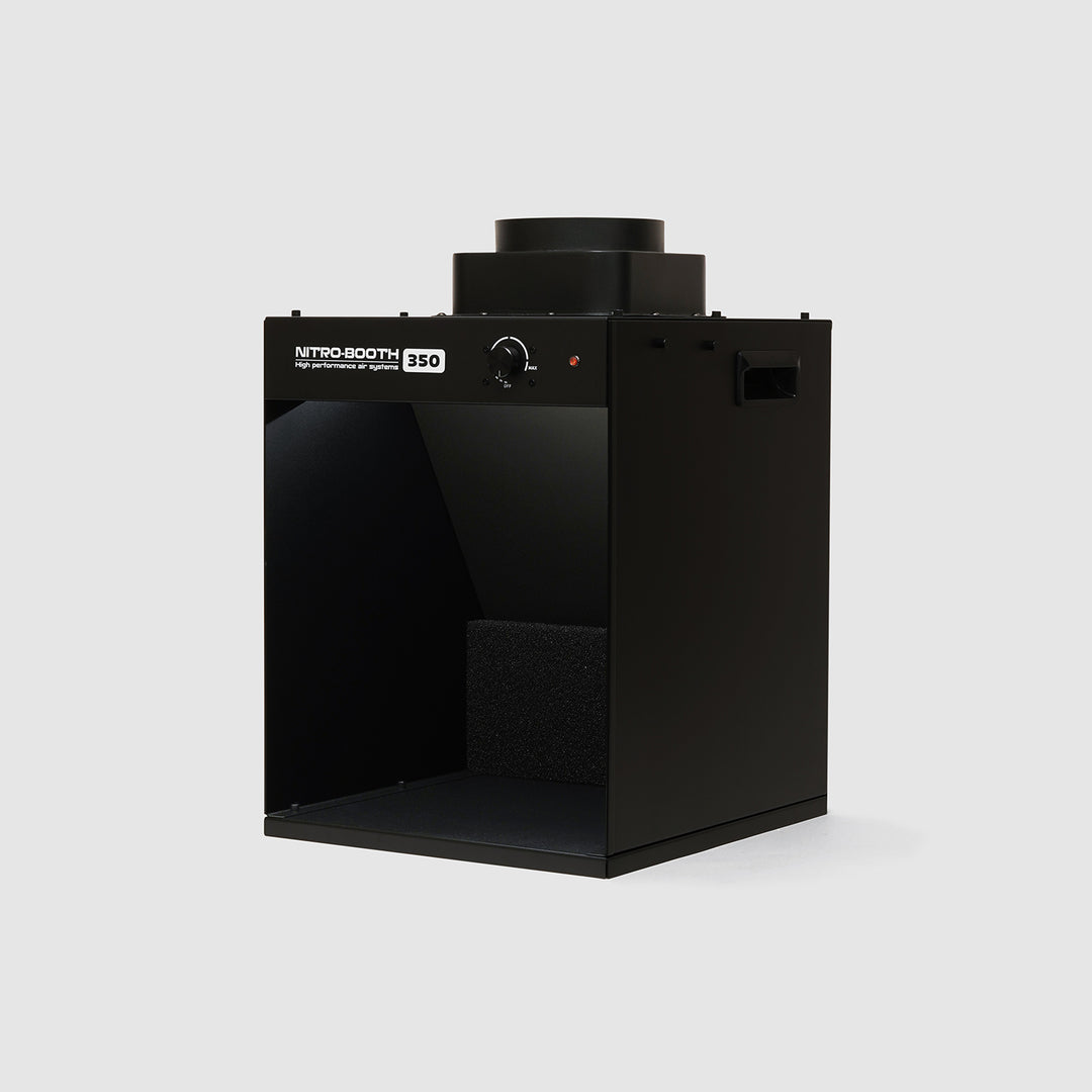 これまで一般的な卓上塗装ブースは100mm~150mm径のものが主流でしたがもう一歩先の口径、200mm径ファンを搭載することによりこの掛け算の答えを大きく変えることに成功しています。